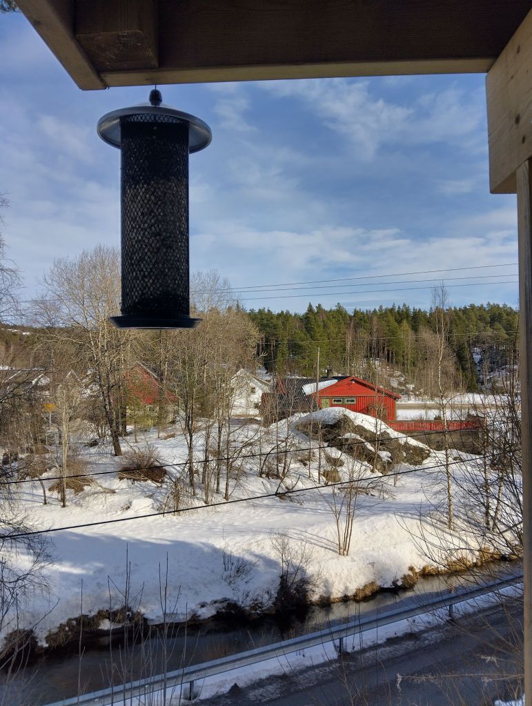 Gisteren heb ik de vogelvoerautomaten schoon gemaakt en gevuld. Een paar hangen aan de bomen voor het balkon en nu heb ik uitzicht op mijn vogeltjes en straks de eekhoorns die komen ontbijten vanaf wat in deze tijd van het jaar, echt mijn favoriete plek in huis is.