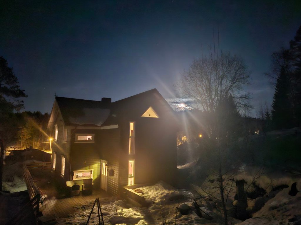 De maan was gisteren schitterend. De man probeerde er een foto van te maken, wat natuurlijk niet echt goed lukt met een telefoon, maar toch…